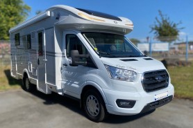 Ce camping-car profilé allie confort moderne et fonctionnalités pratiques. Équipé d'un lit pavillon et d'une table réglables électriquement, il permet