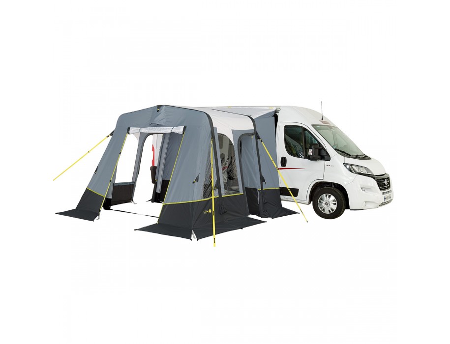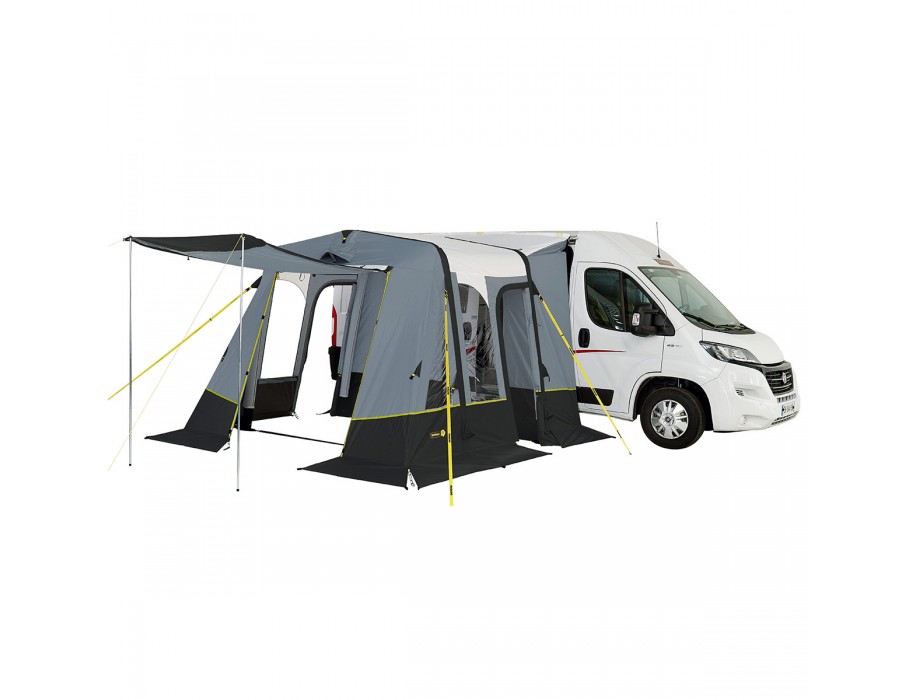 Cet auvent gonflable joue de son indépendance. Autoportant, il peut être laissé sur l’emplacement tandis que le véhicule le quitte.