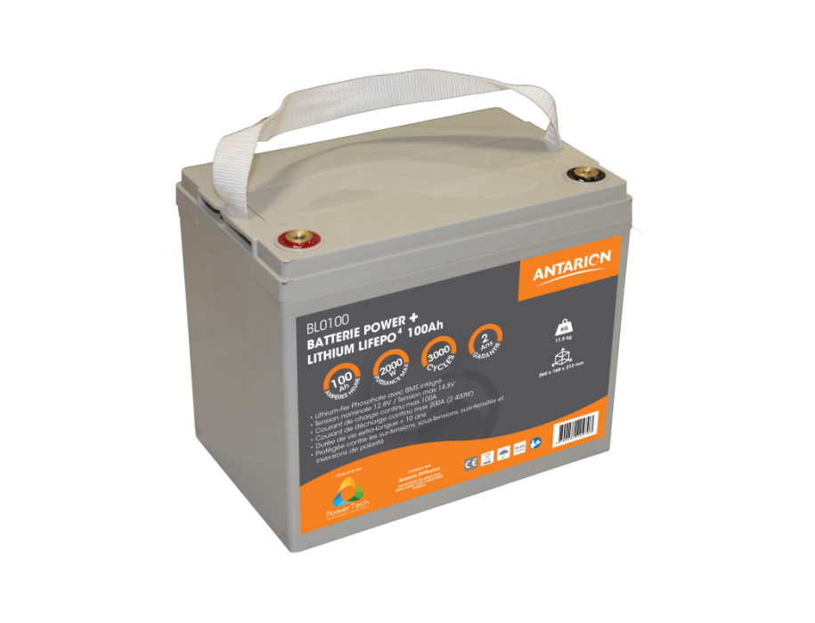 Batterie Lithium 100Ah POWER + ANTARION, 100% d'énergie utilisable : 2 fois mieux qu'une batterie classique !
