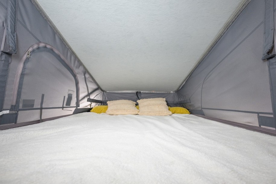Voici un van pensé pour ceux qui veulent voyager librement, facilement et sans contrainte. Avec 5,05 mètres de long et 2,00 mètres de hauteur, il se conduit facilement et offre 4 couchages et 4 places carte grise. Son implantation avec lit toit relevable et lit banquette permet d’optimiser l’espace tout en conservant un vrai confort à bord.