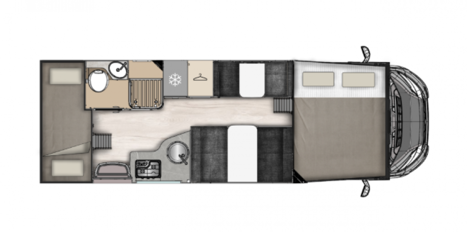 Voici un camping-car familial avec capucine, pensé pour ceux qui veulent voyager librement, facilement et sans contrainte. Avec 6,99 mètres de long et 3,20 mètres de hauteur, il reste pratique à conduire et offre 7 couchages pour partir à plusieurs sans se marcher dessus. Un format malin, idéal pour l’aventure au quotidien comme pour les escapades improvisées.
