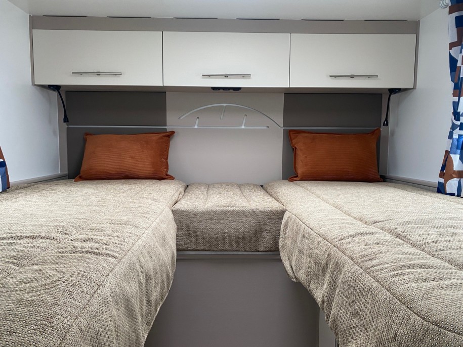 Lits jumeaux avec ambiance JAVA, parfaits pour voyager à deux sans empiéter sur l’espace de l’autre.