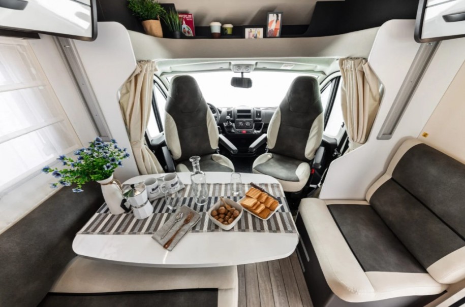 Le porteur est un Fiat Ducato, motorisation 2.2 L développant 140 CV, avec un PTAC de 3 500 kg et un PTRA de 5 500 kg. Ce porteur combine fiabilité et confort pour tous vos trajets.