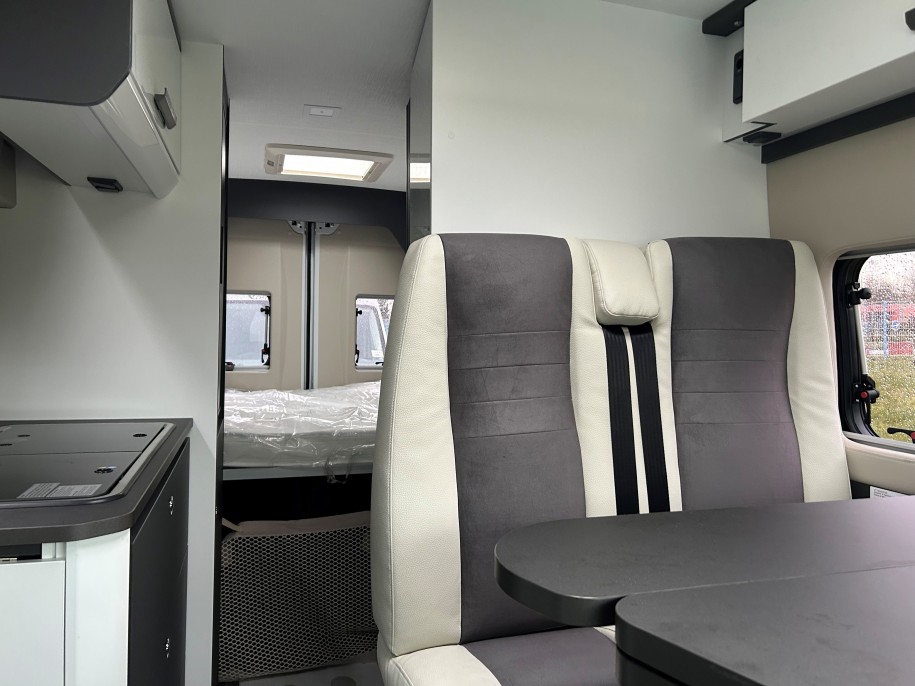 Compact à l’extérieur, malin à l’intérieur, ce fourgon est parfait pour ceux qui aiment voyager léger tout en profitant du confort. Son lit transversal de 186 x 149 cm vous attend pour des nuits dignes
