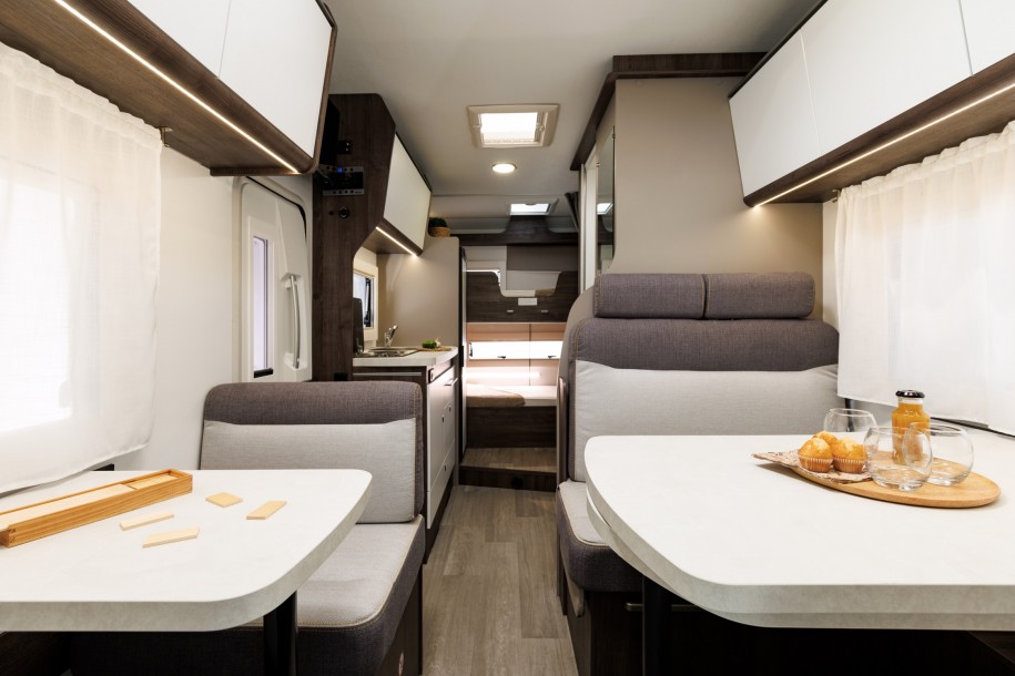 Un camping-car capucine moderne et hyper logeable, parfait pour les tribus qui veulent dormir à six sans jouer à Tetris