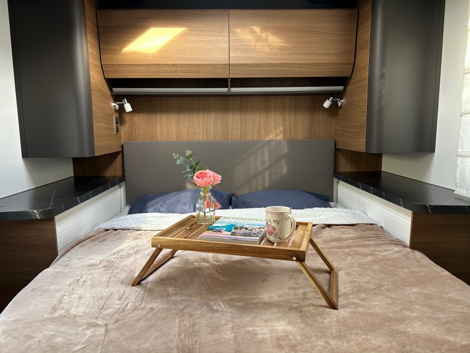 Avec son lit central et ses 4 couchages, c’est le compagnon idéal pour des voyages en duo ou en famille