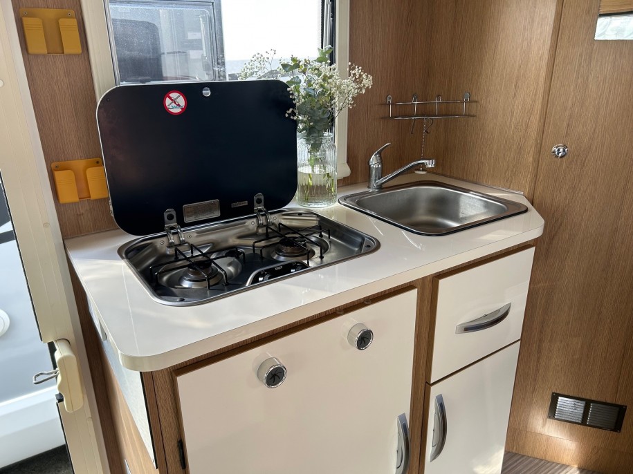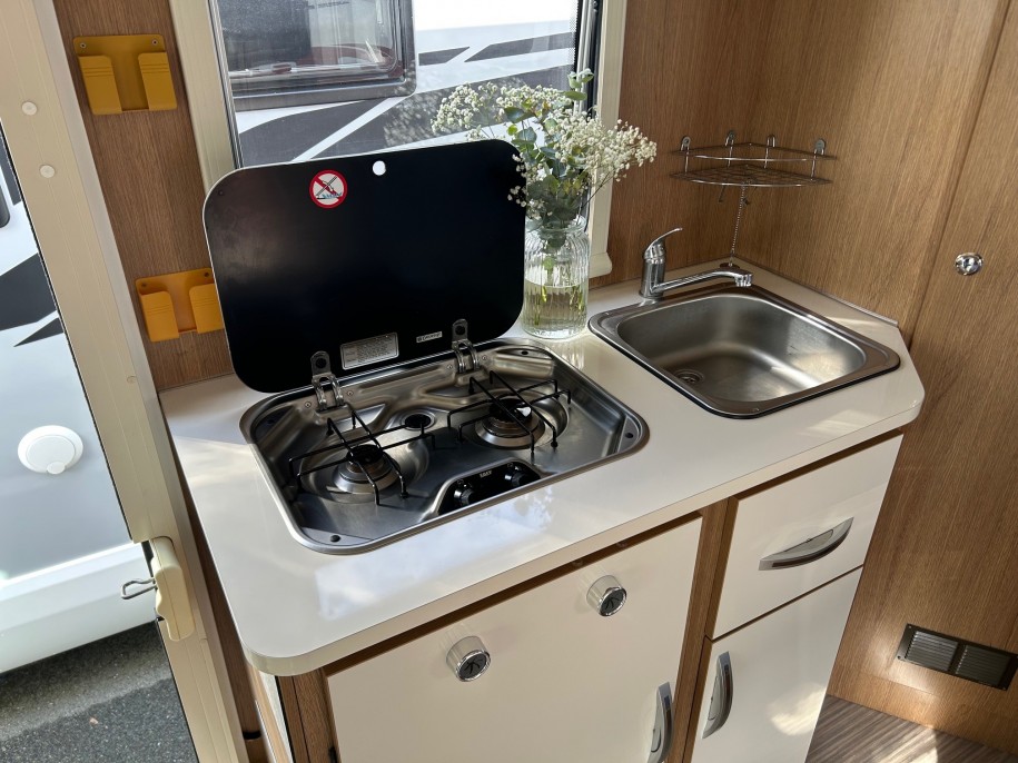 Ce modèle repose sur un Fiat Ducato 2,3 L de 130 cv DIN qui est reconnu pour sa fiabilité. Son PTAC de 3 500 kg et son PTRA de 5 500 kg permettent de voyager sereinement, même chargé.