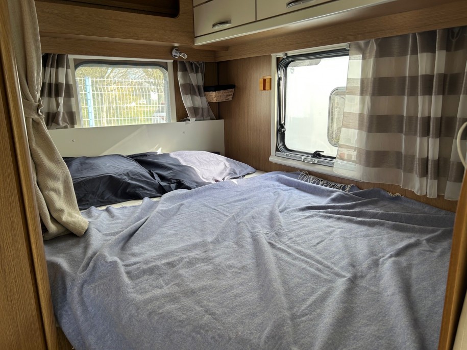 Le Rimor Seal 12 propose un aménagement pensé pour le confort quotidien avec une implantation en lit à la française, facilitant la circulation dans la chambre. Il peut accueillir jusqu'à 4 personnes pour la nuit.